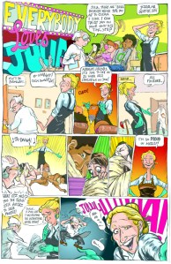 “After seven weeks, the students will understand the rules of panel to panel flow, information streams, page design, close-ups, establishing shots and action panels (and when to use them), character turnarounds, story bibles and so much more! From knife fights aboard an exploding helicopter to romantic conversations over the breakfast table, a step-by-step approach to the how and why of page composition is explored in depth.”